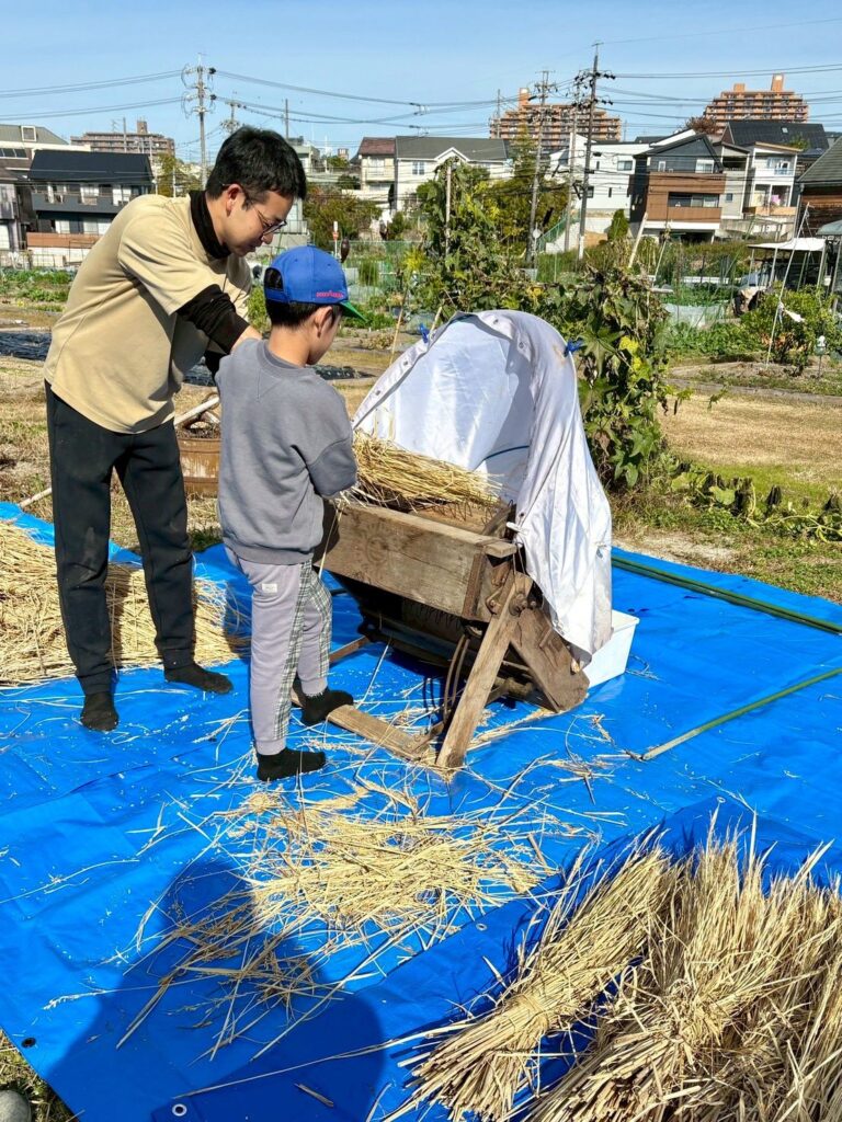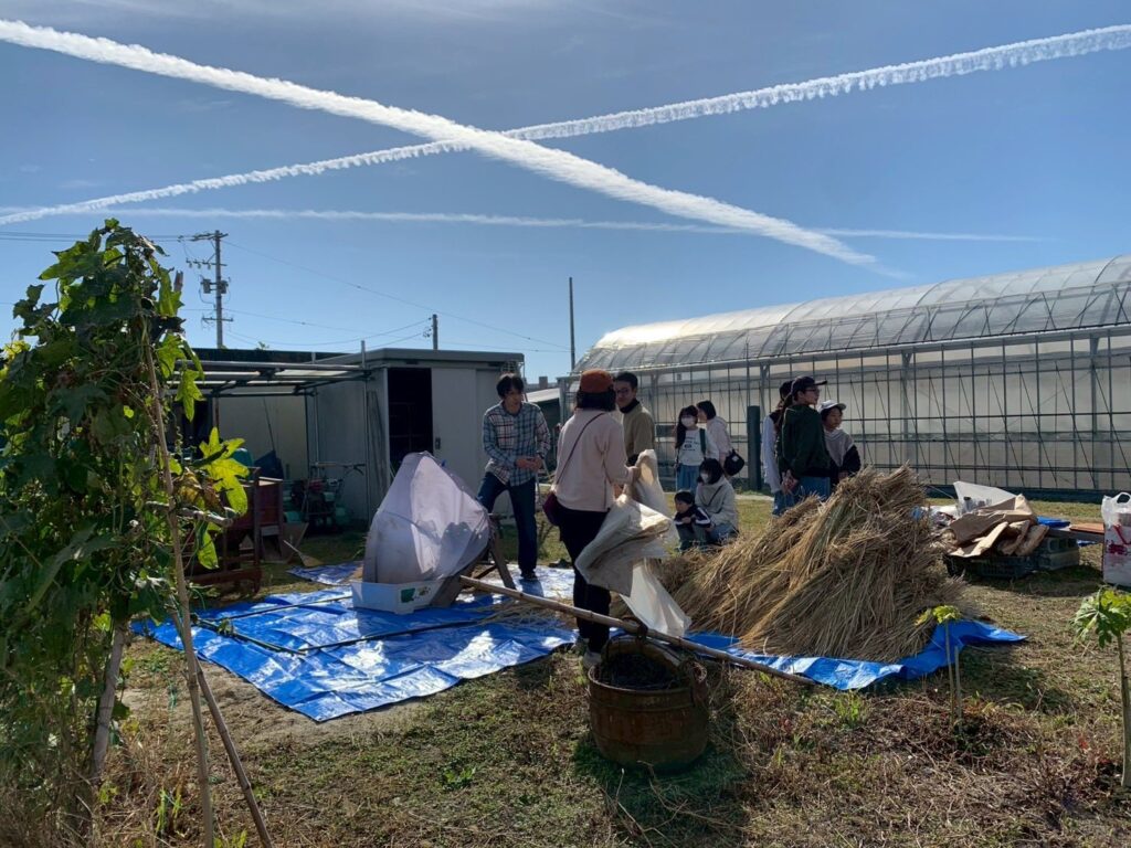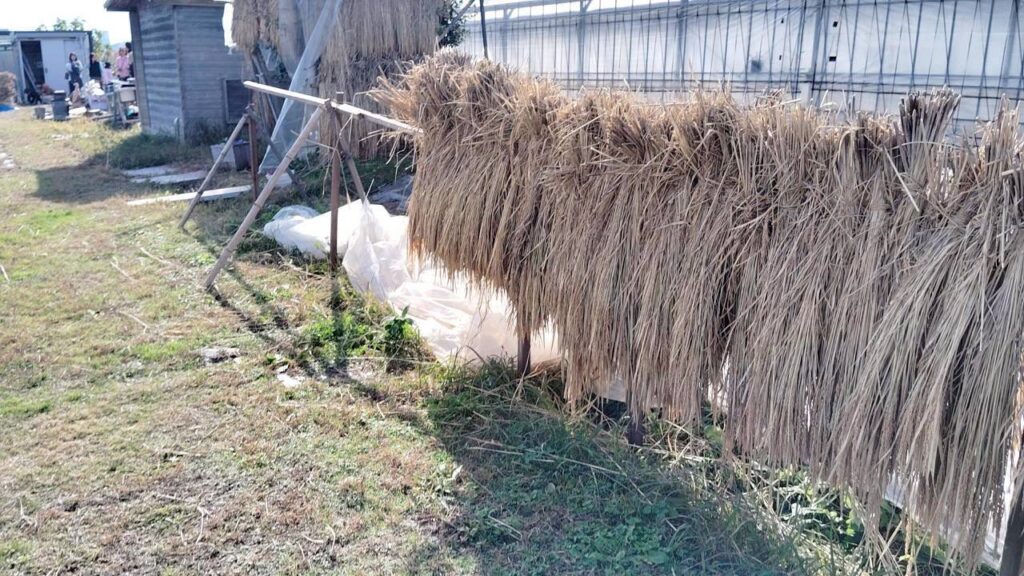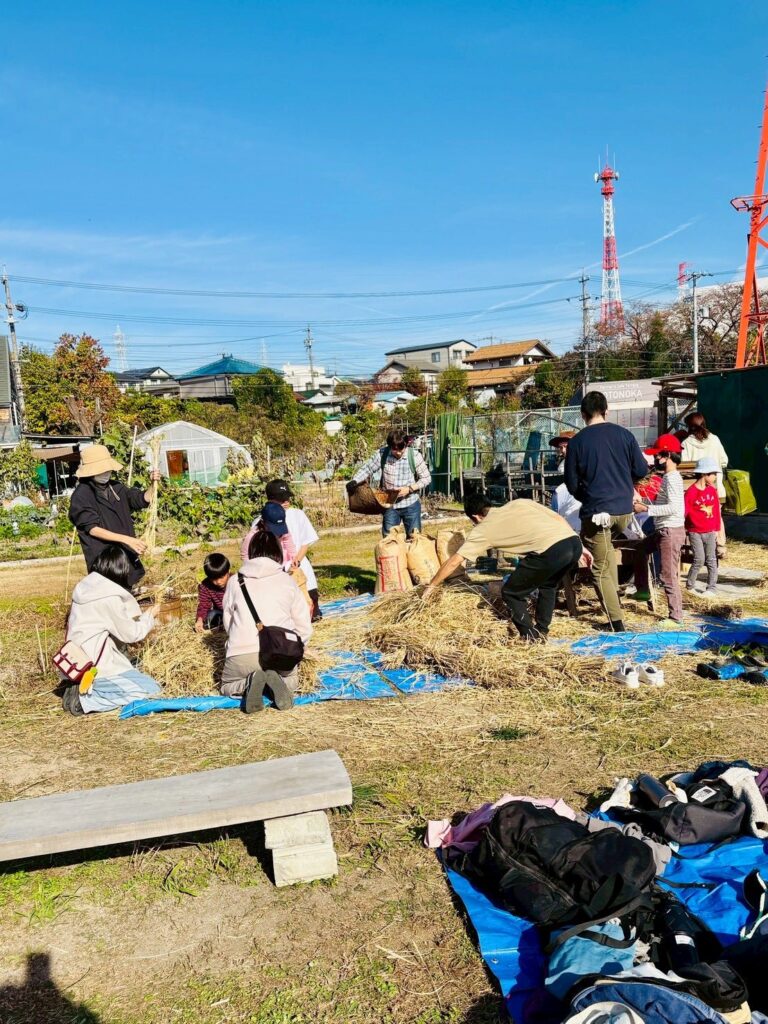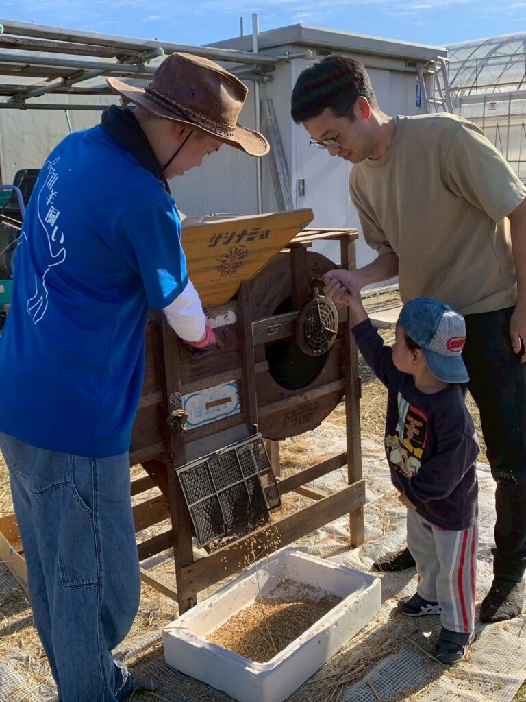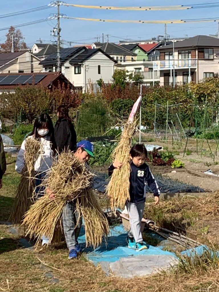 藁がでたら藁を小屋に運ぶのも楽しそうな子どもたち。